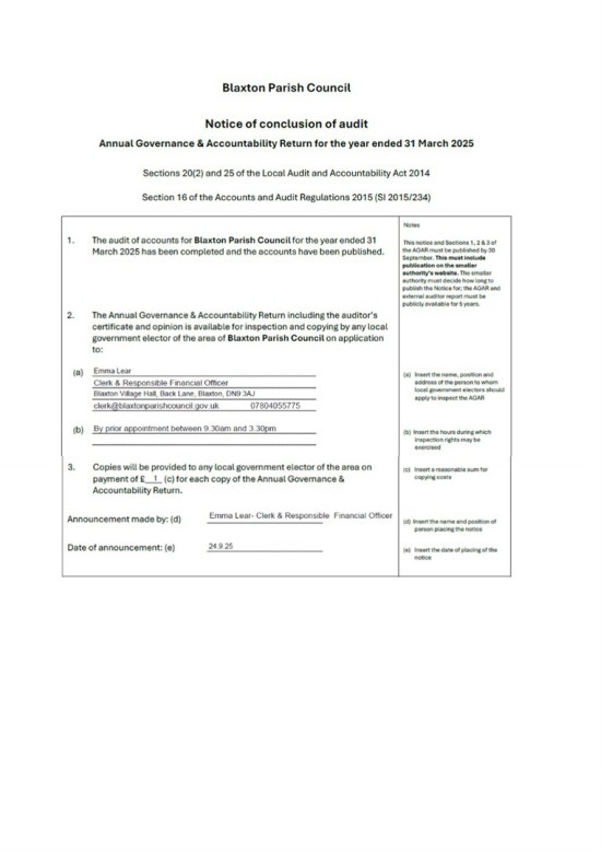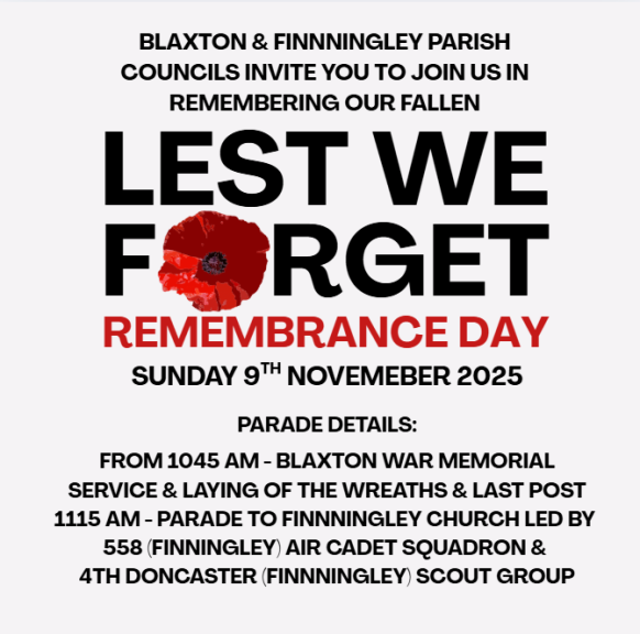 The next Blaxton Parish Council Meeting is scheduled for Wednesday 19th Novemeber 2025